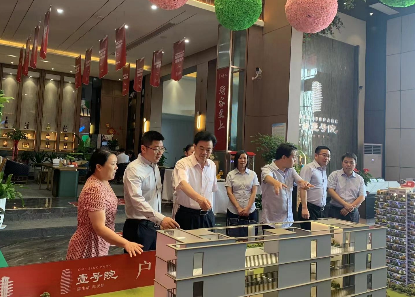 一行人首先深入大冶香格·壹号院项目现场,查看楼盘项目建设情况,详细了解销售情况和住房公积金贷款占比。并与企业进行交流,认真听取企业的意见和建议,耐心解答企业咨询,积极宣传住房公积金制度和新出台的住房公积金新的政策以及便民举措。
