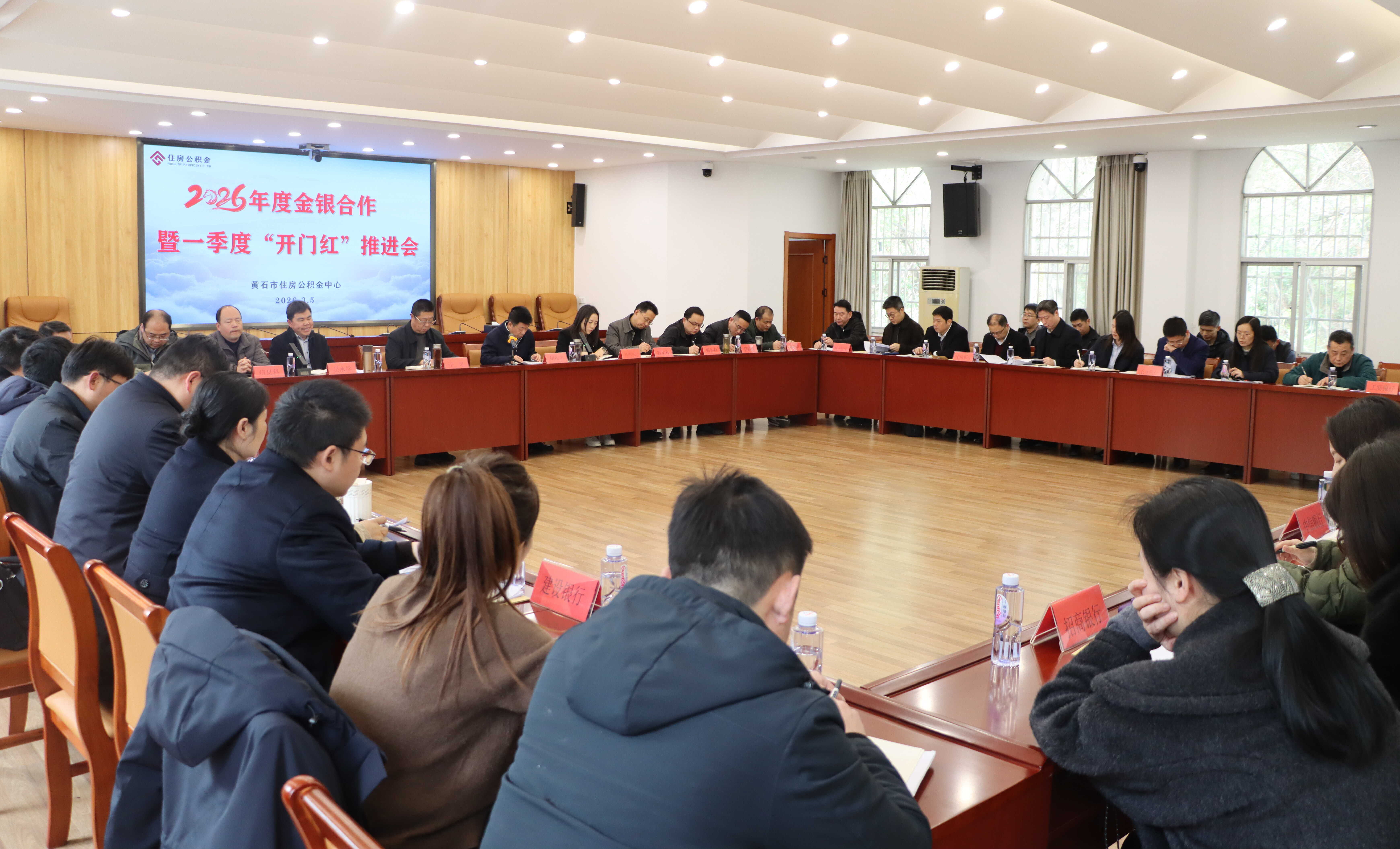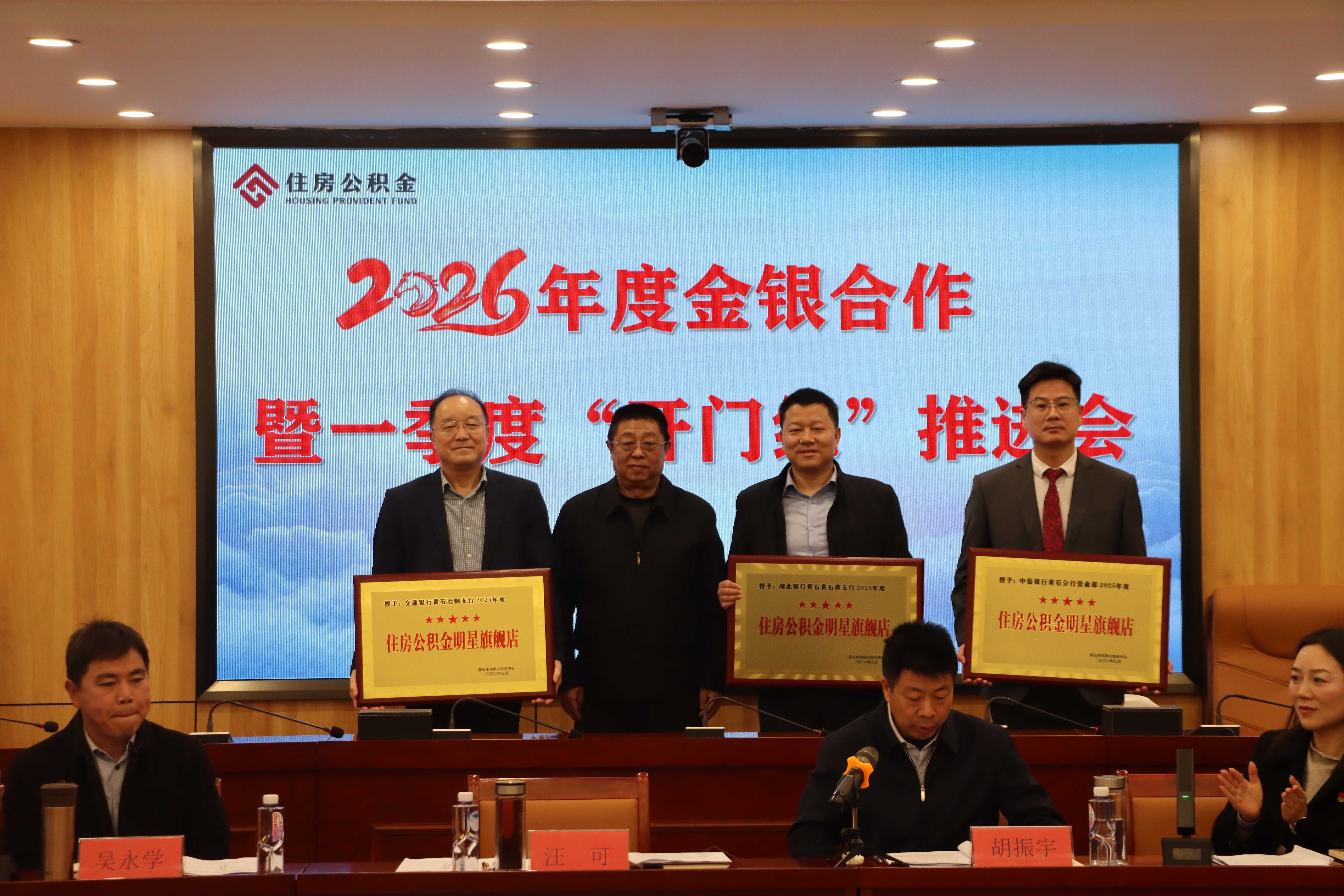 会议通报了旗舰店2025年度考核结果及2026年一季度“开门红”工作情况,并向中信银行黄石分行营业部、湖北银行黄石港支行、交通银行冶钢支行授予“住房公积金明星旗舰店”奖牌,表彰先进、树立标杆。会上,中心领导与银行代表围绕深化合作、提升服务作交流发言,分享务实举措与经验思路。